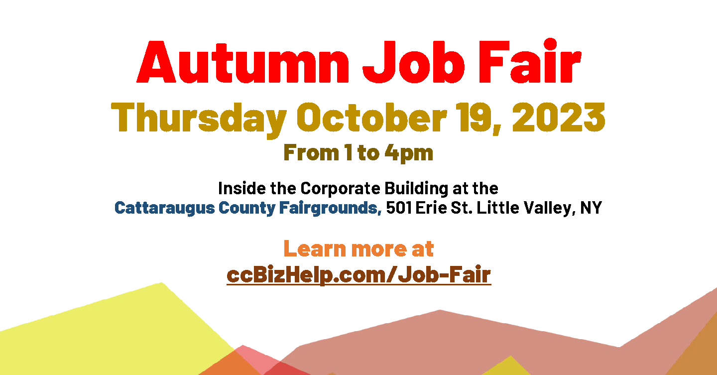 Cattaraugus County Economic Development Team is hosting its annual fall Job Fair on Thursday, October 19th from 1 pm-4pm. The event will take place inside the Corporate Building located on the Cattaraugus County Fairgrounds. A wide variety of industries will be represented from around Cattaraugus County and the surrounding areas.
